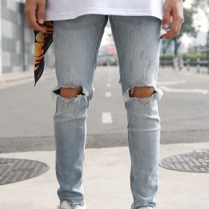 Skinny Jeans With Knee Rips In Blue 1