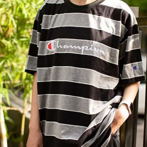 Striped Champion T-Shirt In Grey/Black