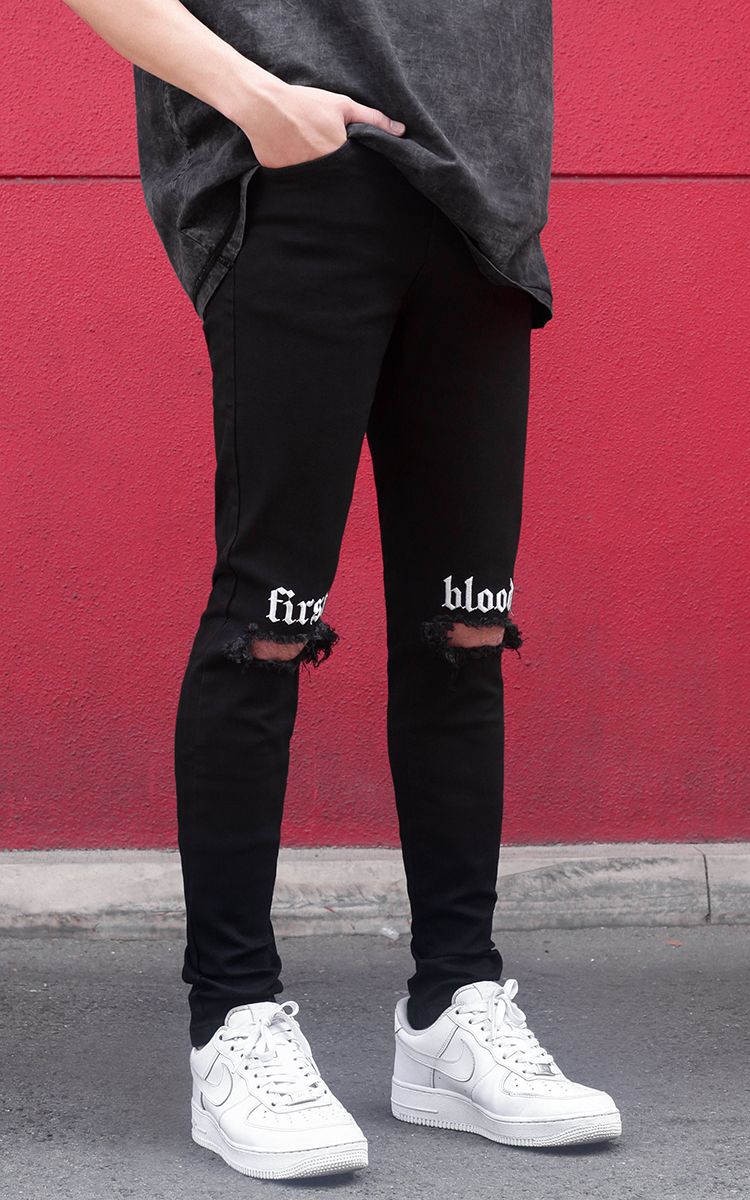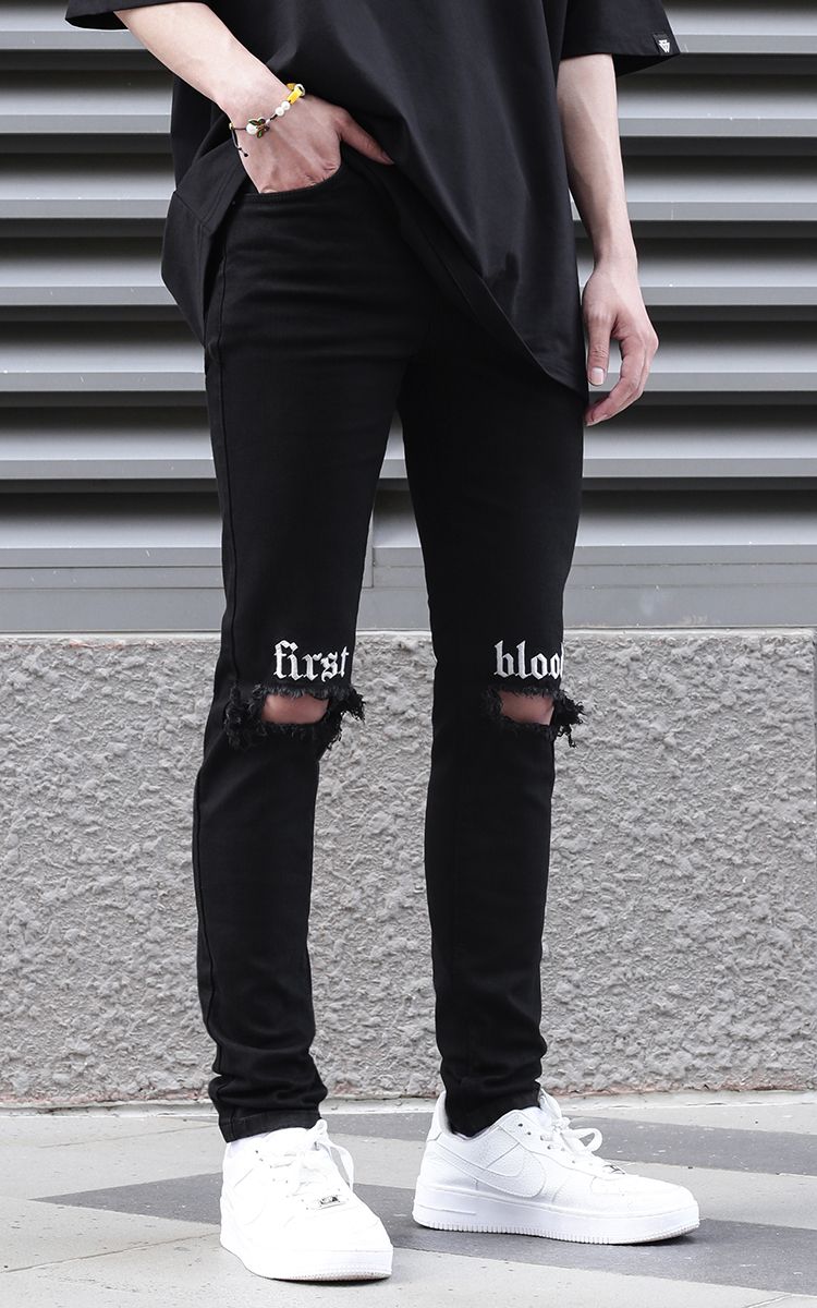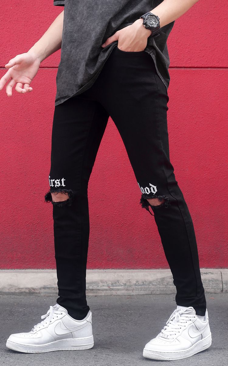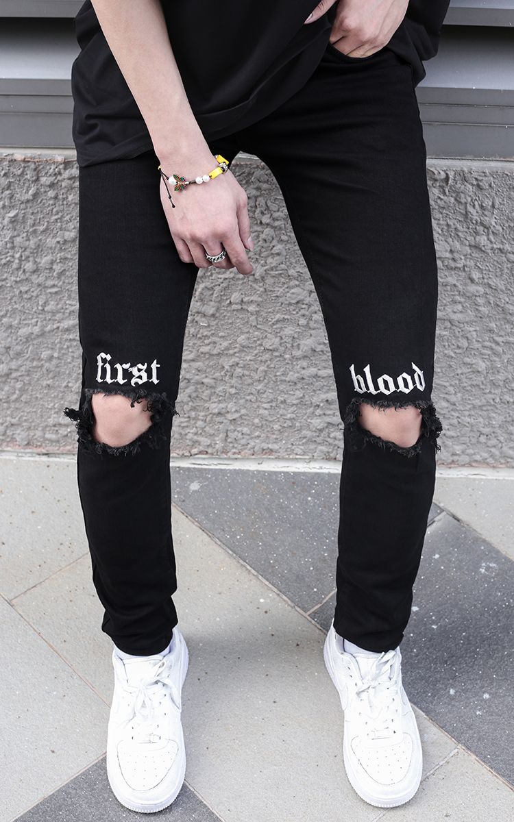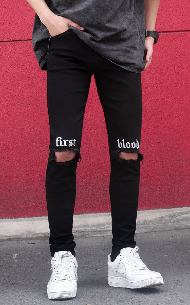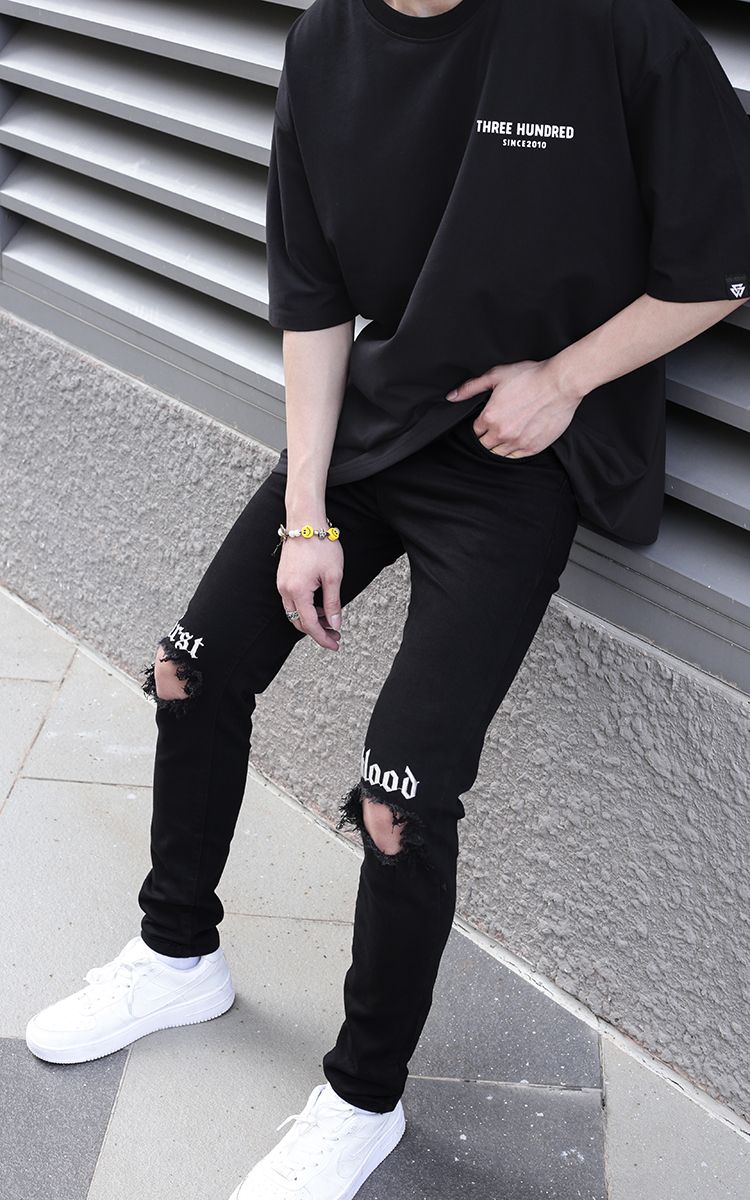 | THÔNG TIN Vải Denim Hai Túi Trước Hai Túi Sau Một Túi Nhỏ Rách Gối Chữ Thêu Trước |