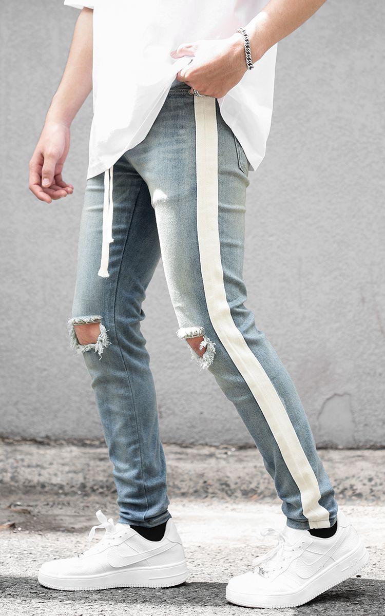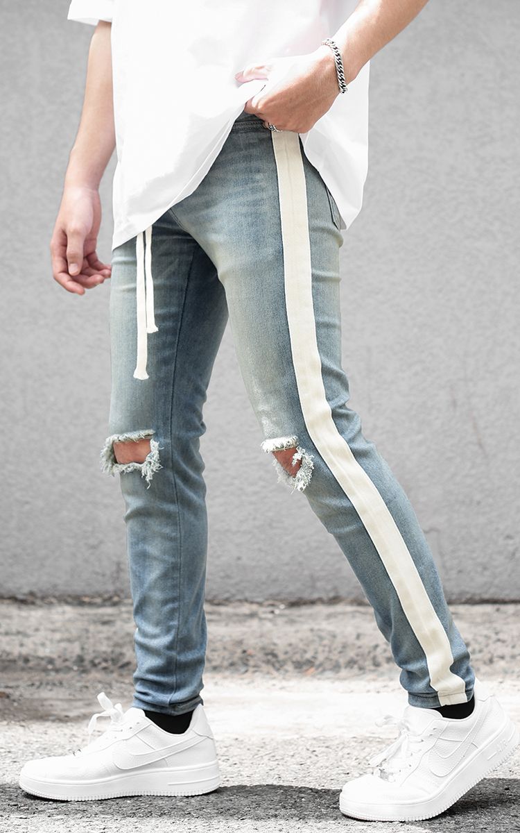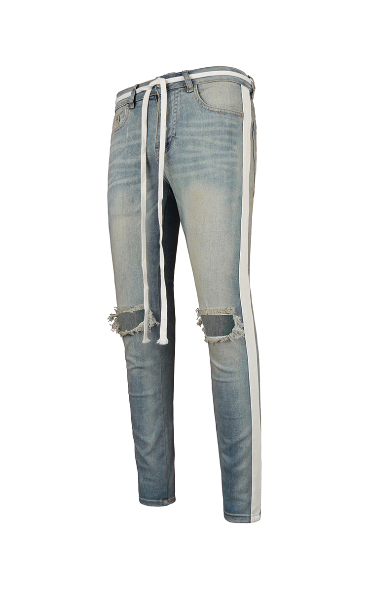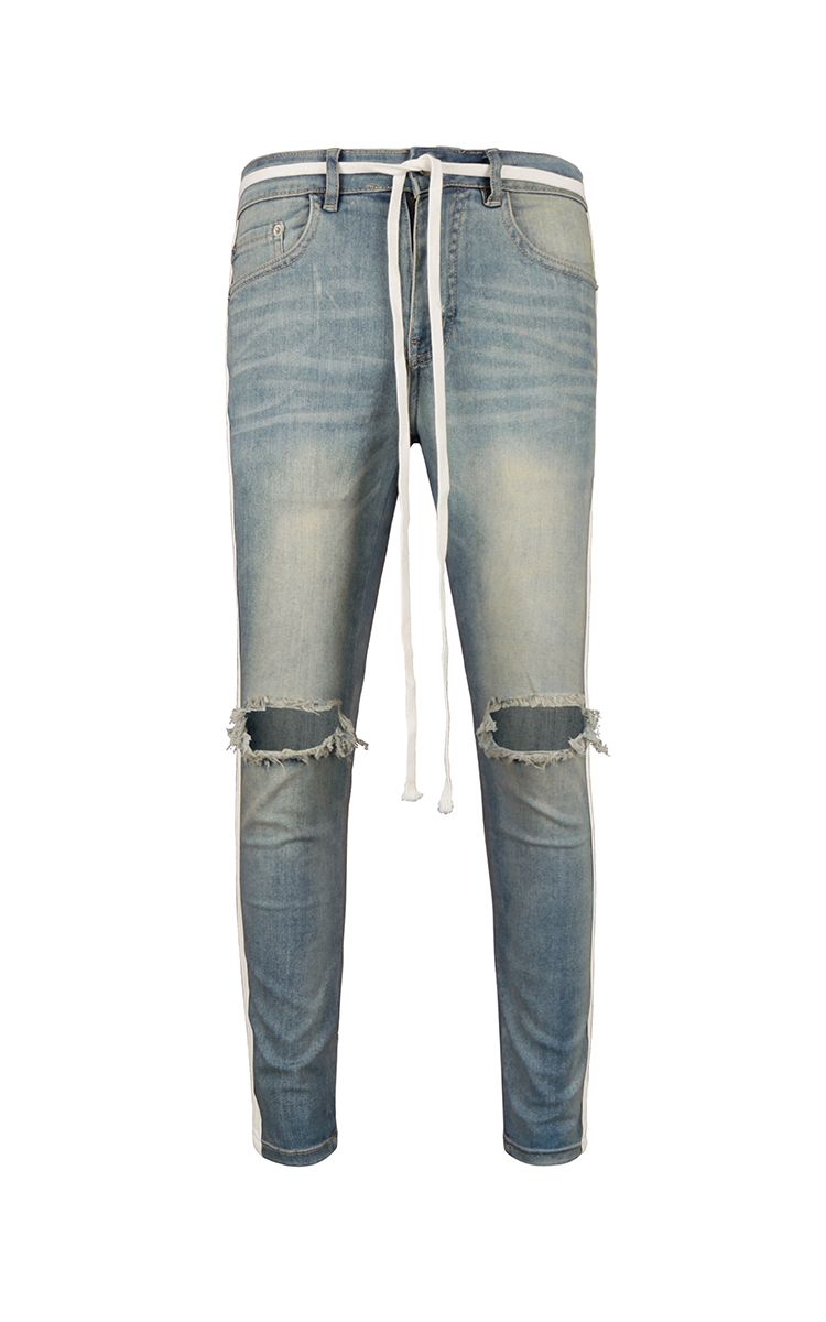 | THÔNG TIN Vải Denim Hai Túi Trước Hai Túi Sau Một Túi Nhỏ Sọc Hai Bên Rách Gối |